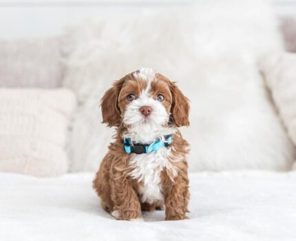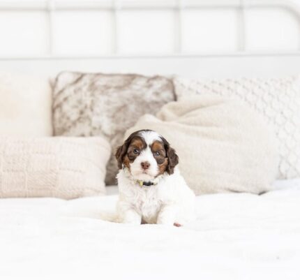 Cavapoos are intelligent, affectionate, and highly social. North female Cavapoo puppy has a gentle, playful personality and enjoys bonding with her humans. She is perfect for families, first-time dog owners, or anyone looking for a loyal and affectionate companion.